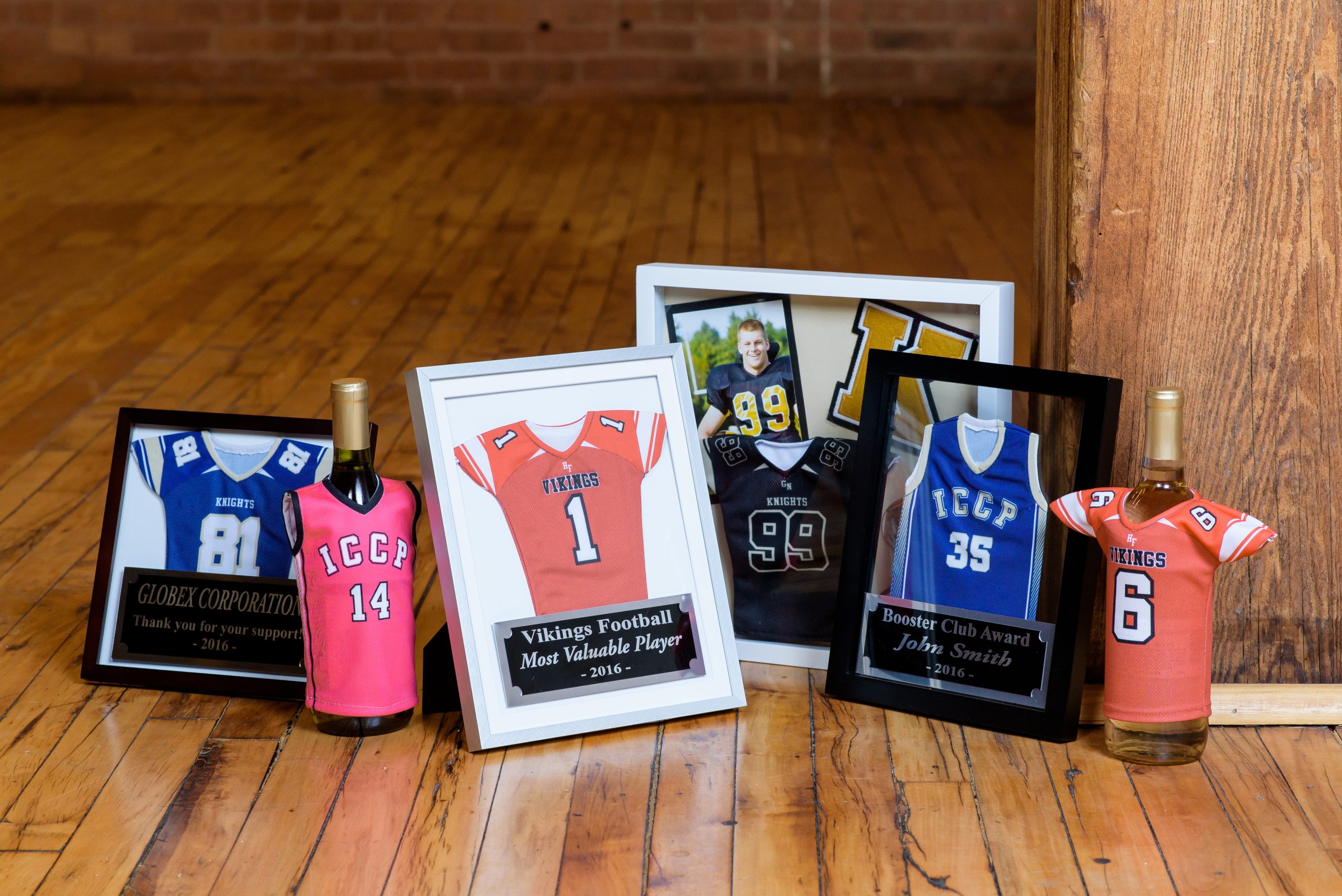 MiniJerzeys® are a great alternative to trophies. Each MiniJerzey® award can be completely customized to team, colors, player name, and number. Recognize your favorite player, coach, or booster with a custom MiniJerzey®!