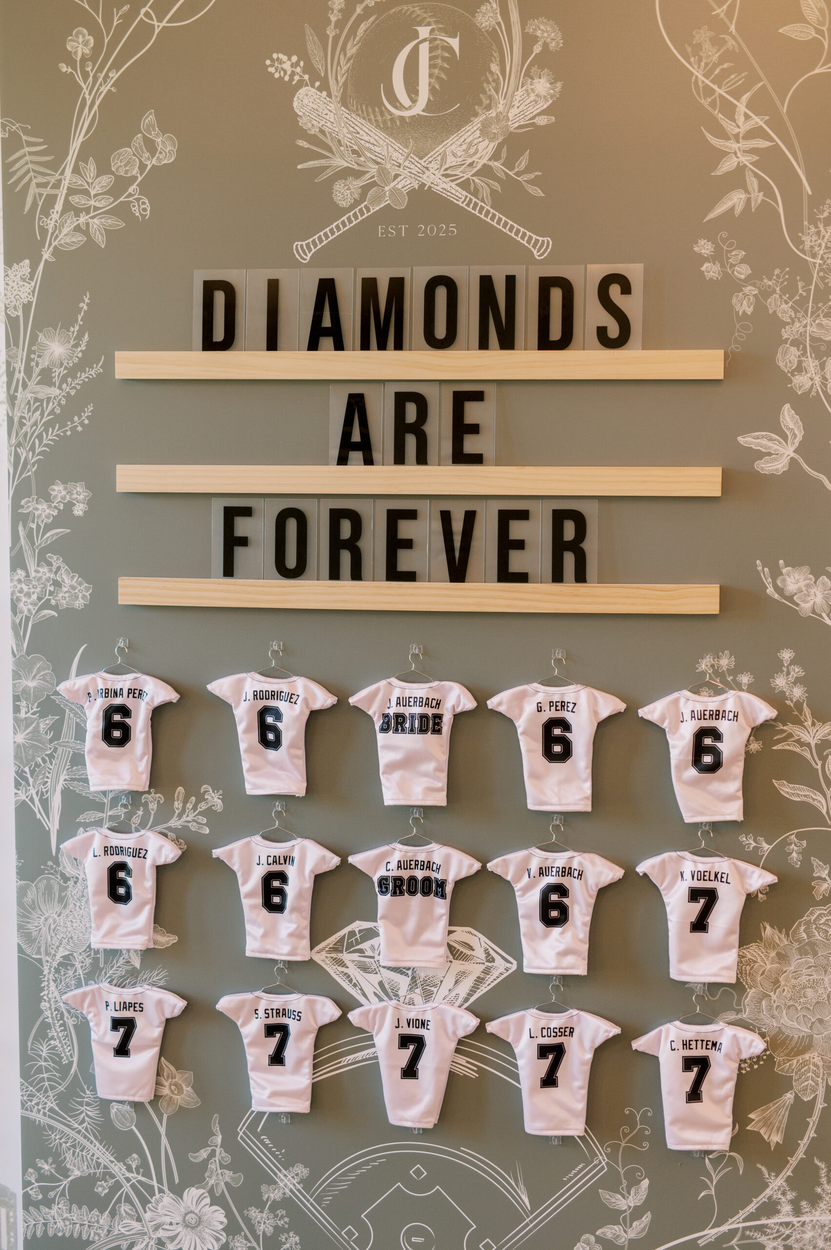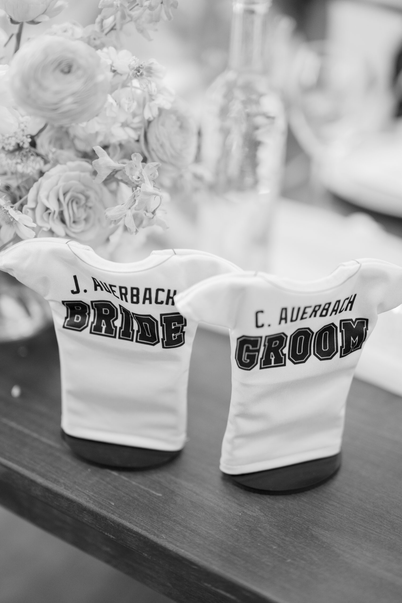 MiniJerzeys® produced custom miniature jerseys that were thoughtfully displayed and distributed as guest giveaways during the wedding reception. The couple collaborated with their planning team to create a presentation that felt elevated and cohesive with the overall event design.