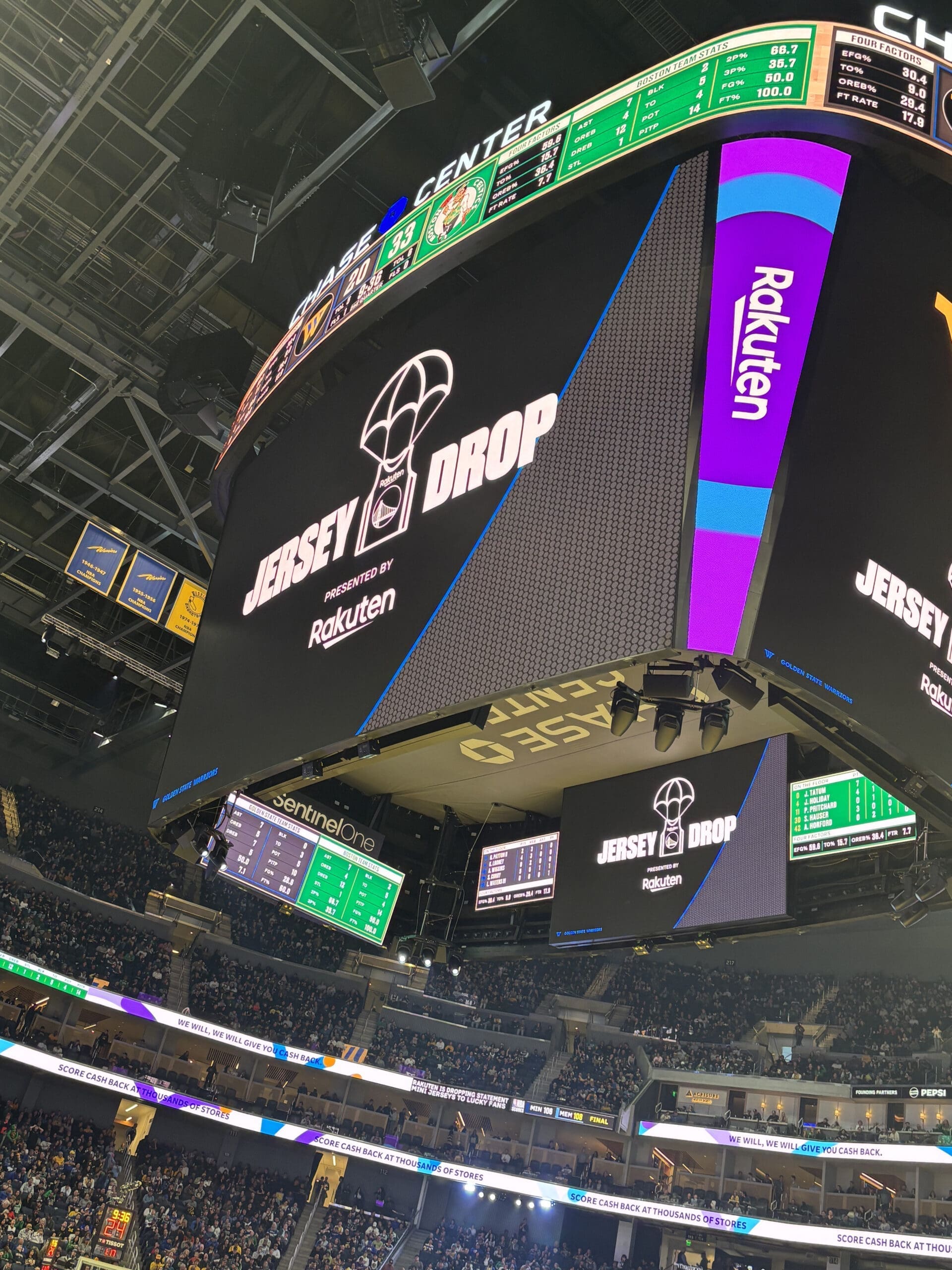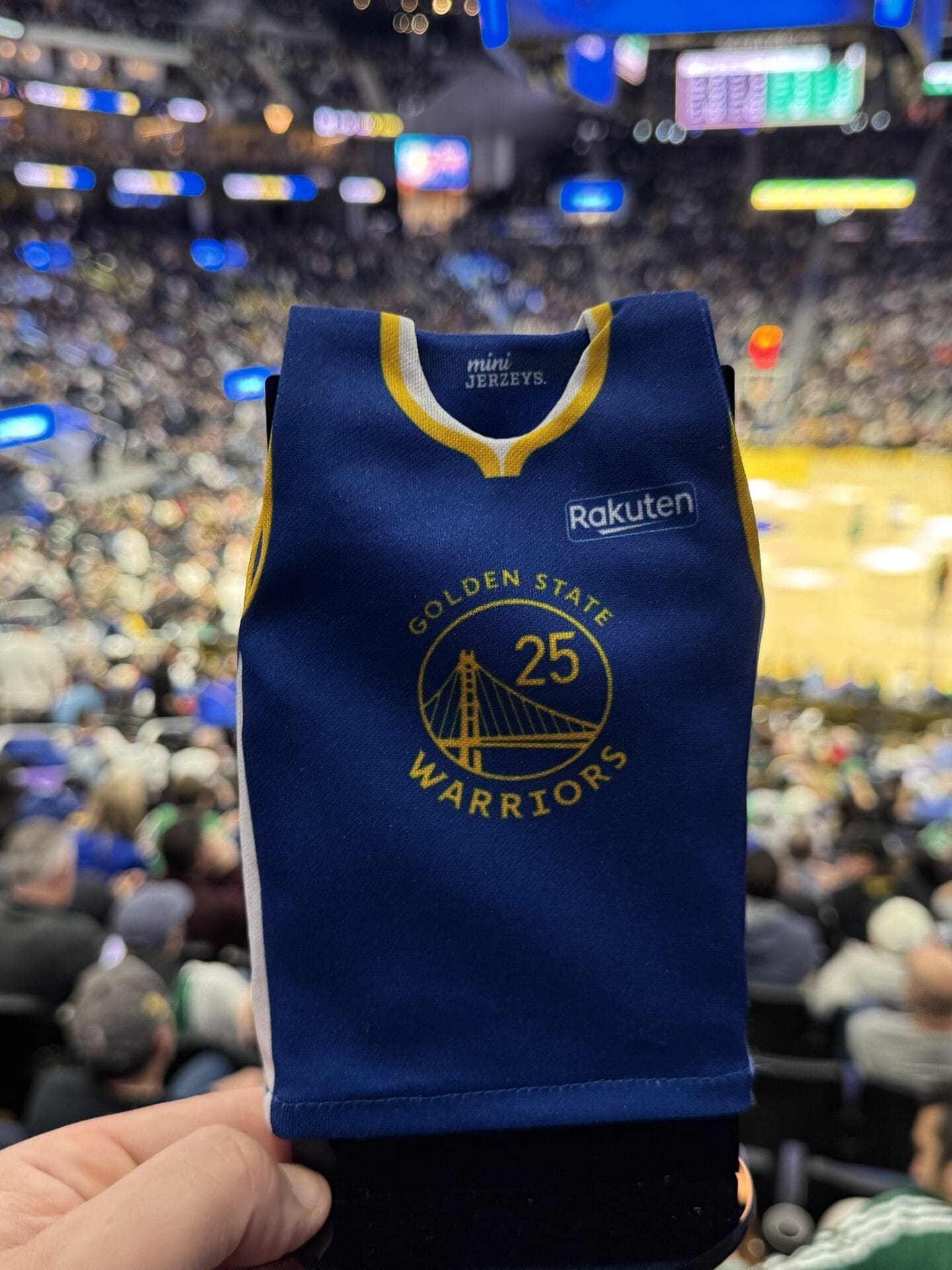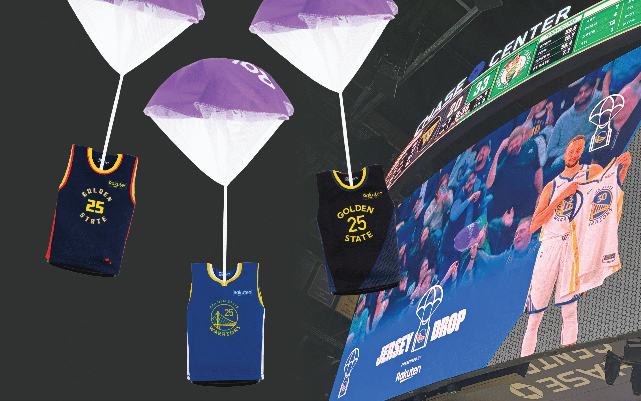 In the 2024-2025 NBA season, MiniJerzeys® partnered with the Golden State Warriors to enhance fan engagement through an innovative “Jersey Drop” promotion. This collaboration aimed to excite attendees and reward their loyalty by combining in-game entertainment with exclusive merchandise rewards. The initiative also provided a unique opportunity to highlight Rakuten, the Warriors’ official jersey-badge partner, by featuring their branding on the MiniJerzeys®.
