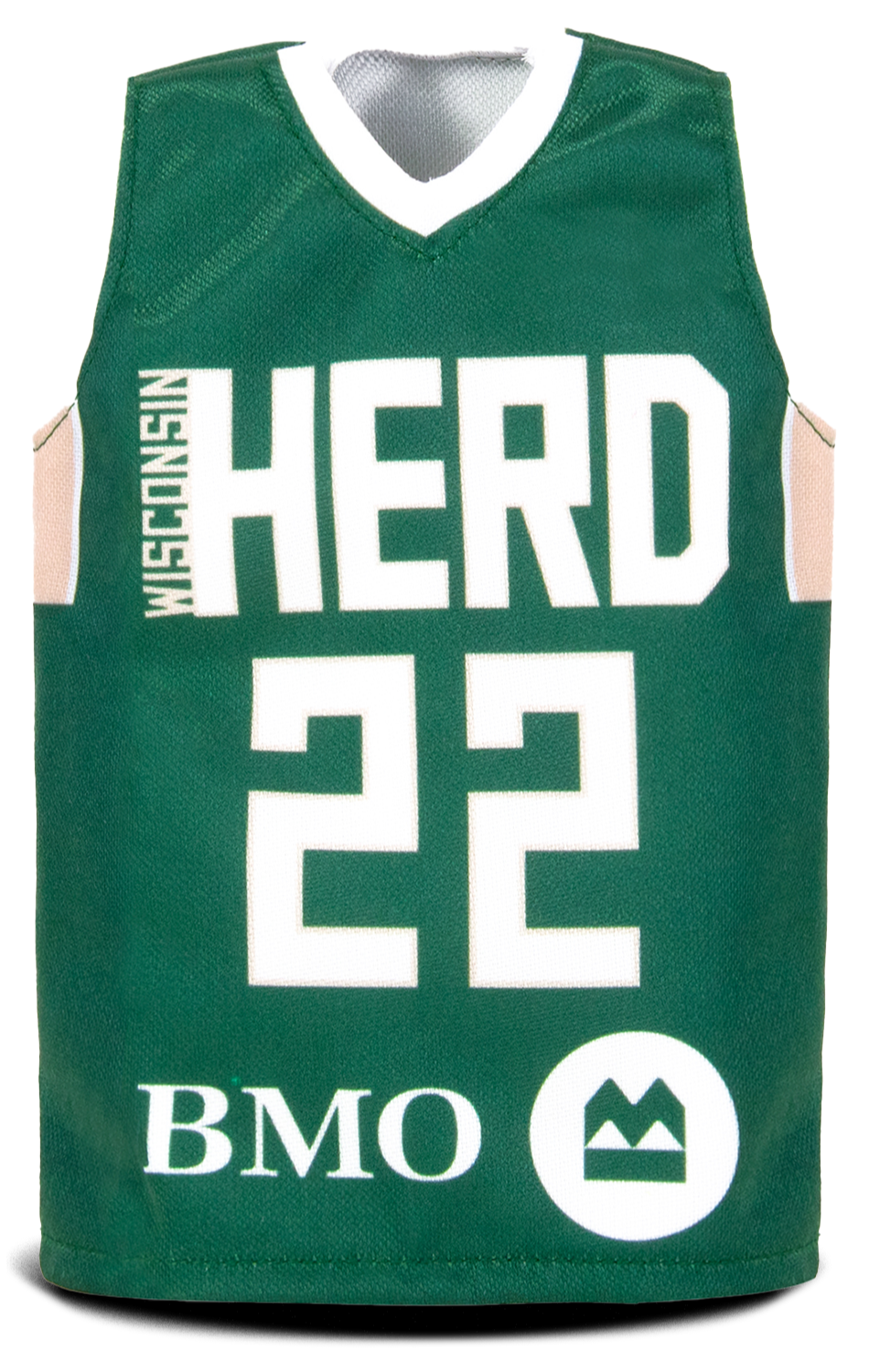 MiniJerzeys® produced a distinctive collectible for Herd aficionados. The Herd’s uniforms resemble the parent clubs’ (Milwaukee Bucks) uniform, featuring the G League team’s name and BMO sponsor logo.