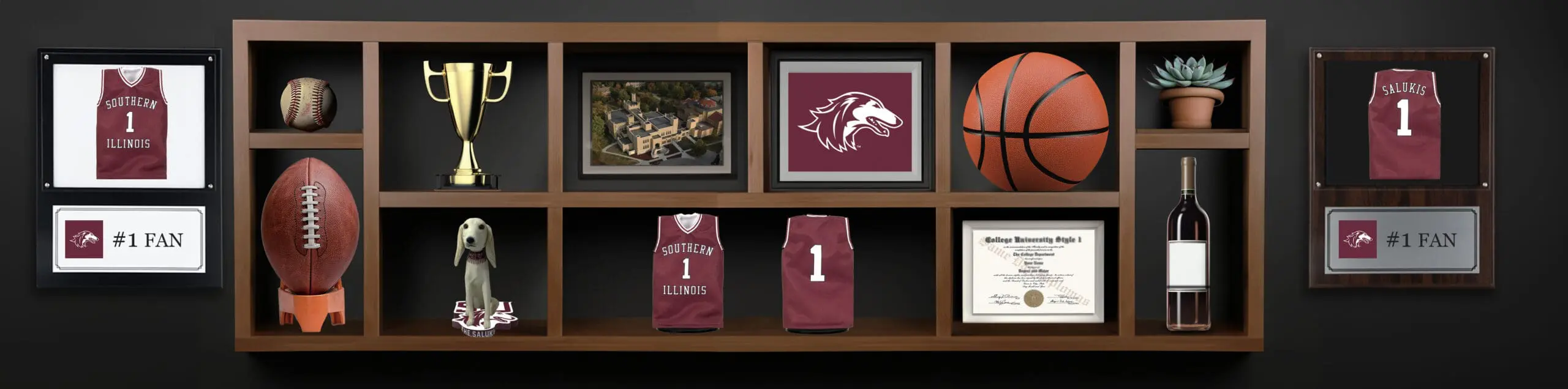 Explore our high quality MiniJerzeys® for football and basketball. These miniature jerseys are perfect for fans of all ages, whether you are looking to decorate your space, find a unique gift, or expand your collection of SIU memorabilia.